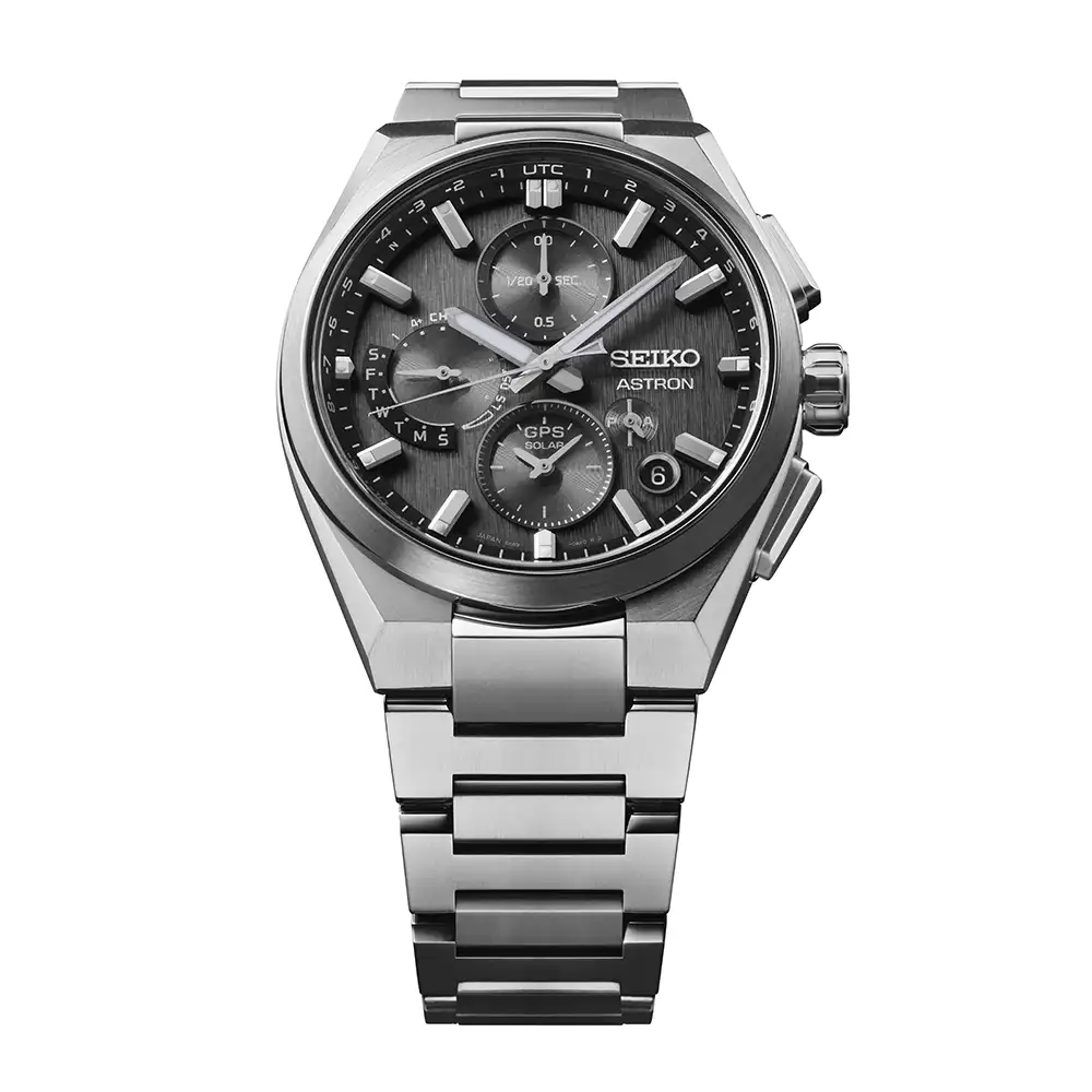 De met verticale lijnen afgewerkte wijzerplaat geeft het geavanceerde ontwerp een extra krachtige en solide uitstraling.